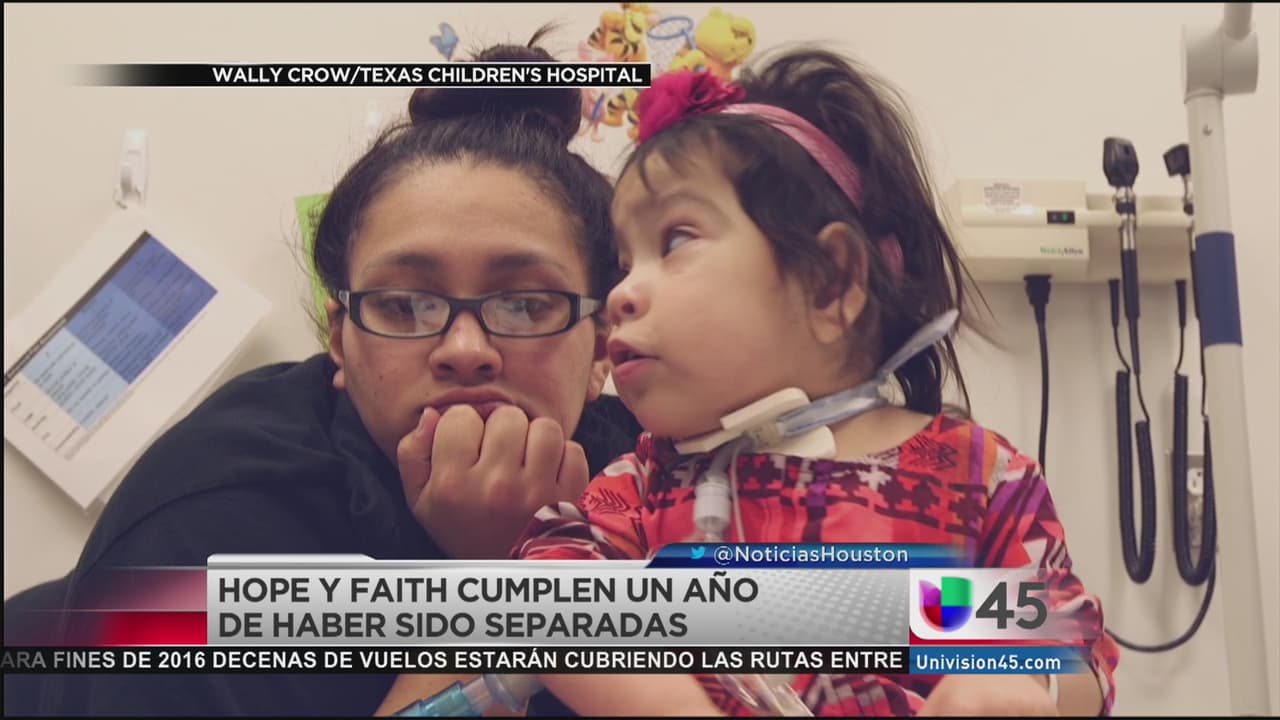 Las hermanitas siamesas Fe y Esperanza Mata fueron separadas exitosamente en el hospital Texas Children hace un años y ambas han tenido progresos de salud muy satisfactorios