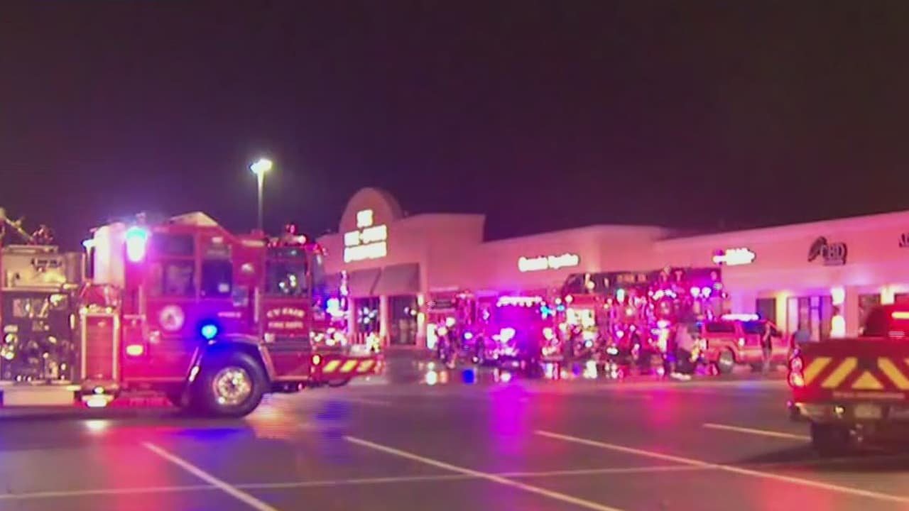 Bomberos controlan incendio en un centro comercial en el área de Jersey Village, en el condado Harris