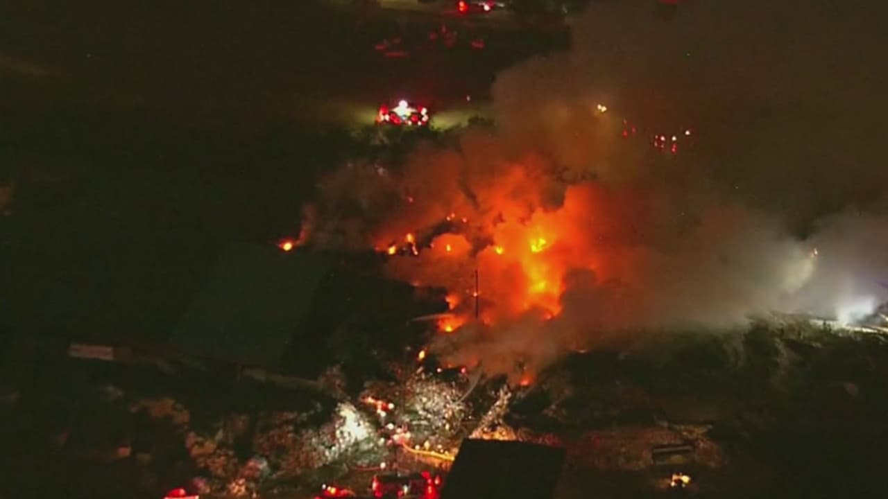 Bomberos trabajan para extinguir un incendio en una planta de reciclaje al norte de Houston