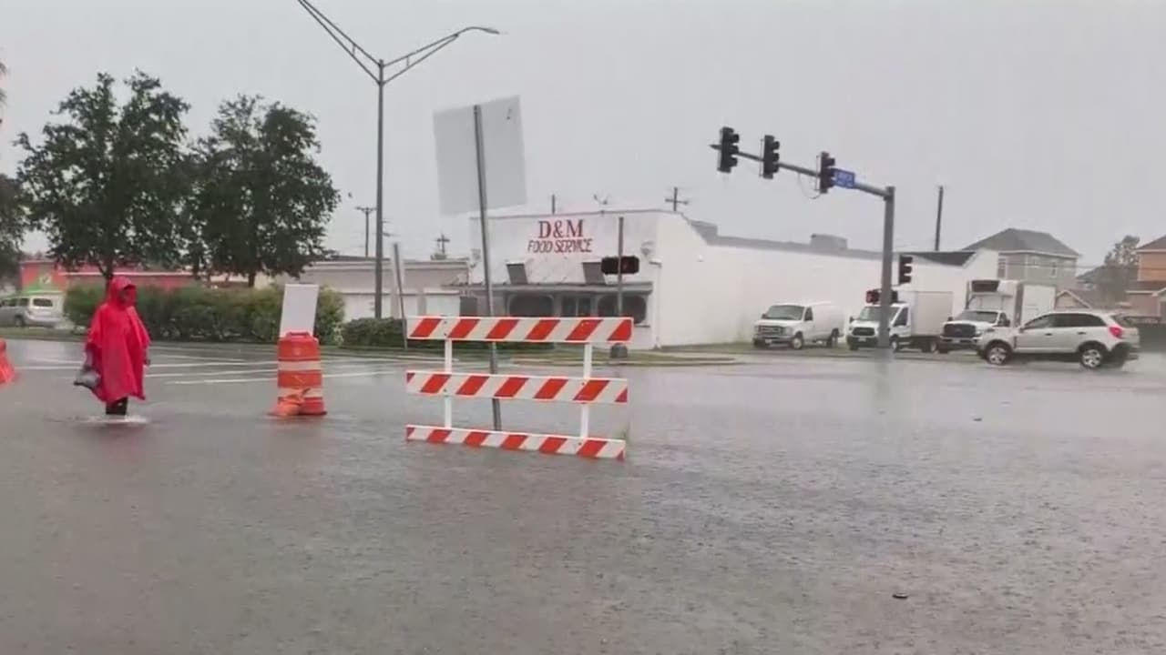 Calles y avenidas inundadas en Galveston tras el paso de la depresión tropical Imelda