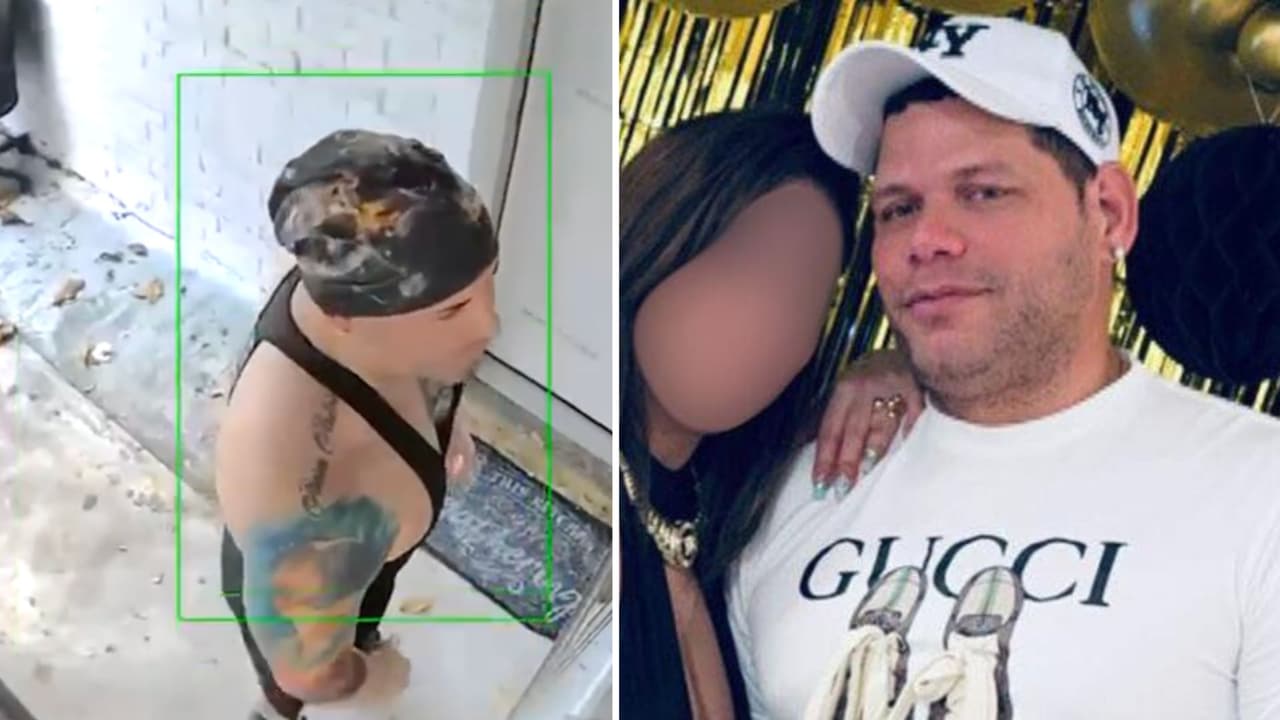Un sospechoso aparece en una cámara de seguridad acercándose a una puerta. Cuando la víctima, el cubano Ediesky Piñeiro, la abre, es baleado.