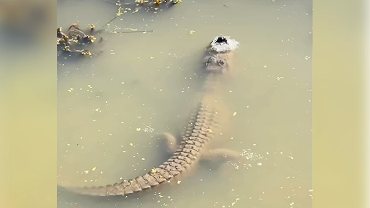 El video que muestra un caimán congelado se grabó en un estanque del refugio Gator Country, en Beaumont, Texas, el miércoles 17 de enero de 2024, cuando la