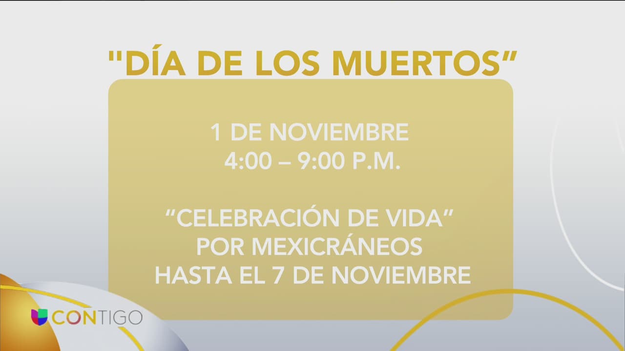 Con la Instalación “Celebración de vida” puesta en diferentes puntos del parque Discovery Green, además de un altar para la comunidad creado por Ángel Quezada, donde asistentes pueden llevar fotos para colocarlas en la ofrenda. La cita es este 1 de noviembre de 4 de la tarde a 9 de la noche.