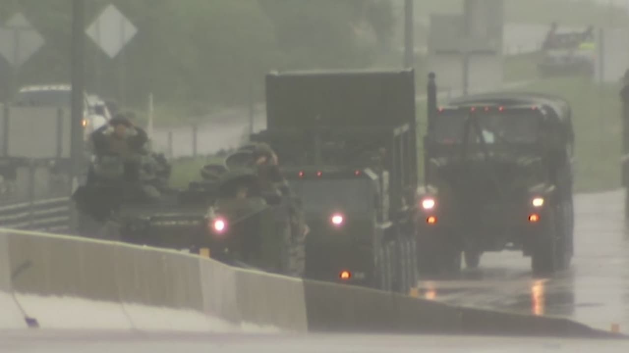 Cerca de 14 vehículos militares llegan a Dickinson para realizar rescates en zonas afectadas