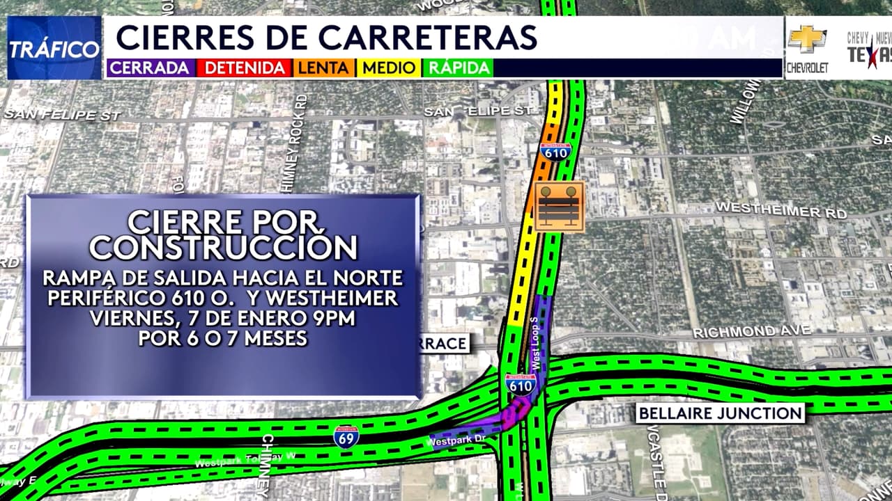 El cierre será en la salida de la autopista 610, dirección norte hacia la avenida Westheimer, cerca del área comercial de Galleria. De acuerdo con las autoridades, se estarán ejecutando varias labores de construcción.