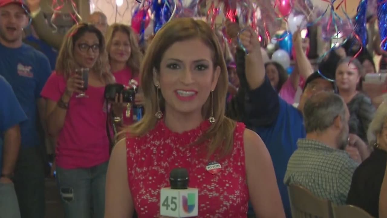 Ciudadanos celebran en el Condado de Harris la posible victoria de Silvia Treviño