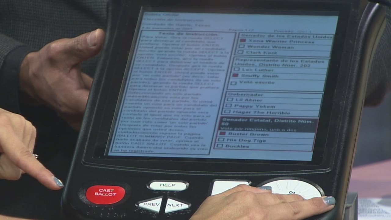 Claudia Hogue, representante de NALEO, explica los pasos que se deben seguir para poder usar la máquina y también habla sobre los documentos que se tienen que presentar a la hora de participar en los comicios.