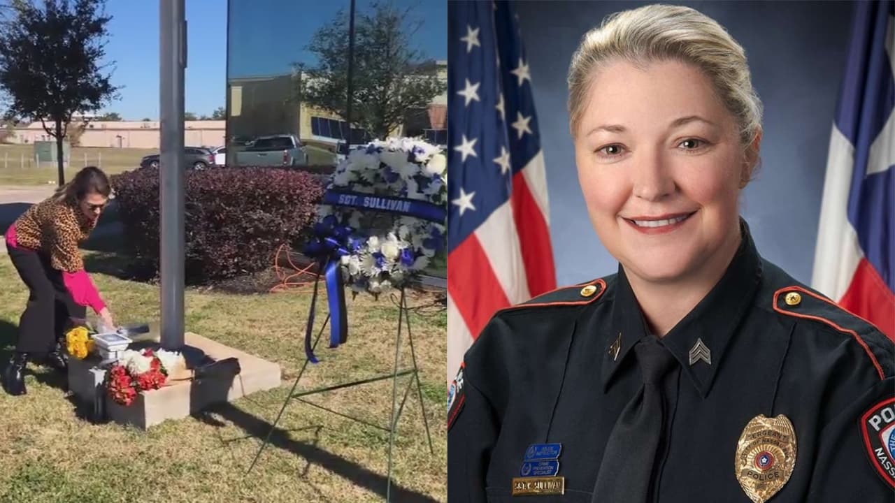 Varias personas han dejado arreglos florales frente al departamento de policía donde trabajaba la sargento Kaila Sullivan, de 43 años, quien perdió la vida este martes después de ser atropellada por un conductor durante una parada de tráfico al sureste de Houston.