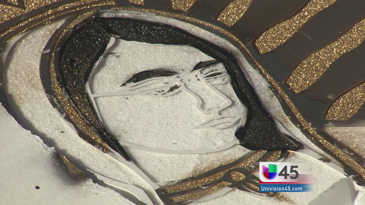 Feligreses de la iglesia Holy Ghost crearon 25 tapetes artísticos con motivos de imágenes religiosas, todas fabricadas con sal de colores, para recordar la pasión y muerte de Jesús