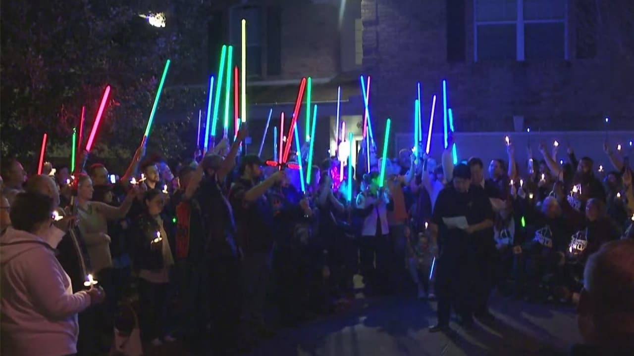 Con sables de luz, recuerdan a una hispana que fue asesinada cuando preparaba una venta de garaje