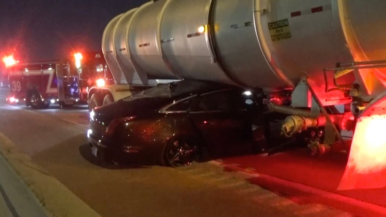 Choque en Eastex Fwy y Crosstimbers: Conductor de un Jaguar termina bajo un camión cisterna