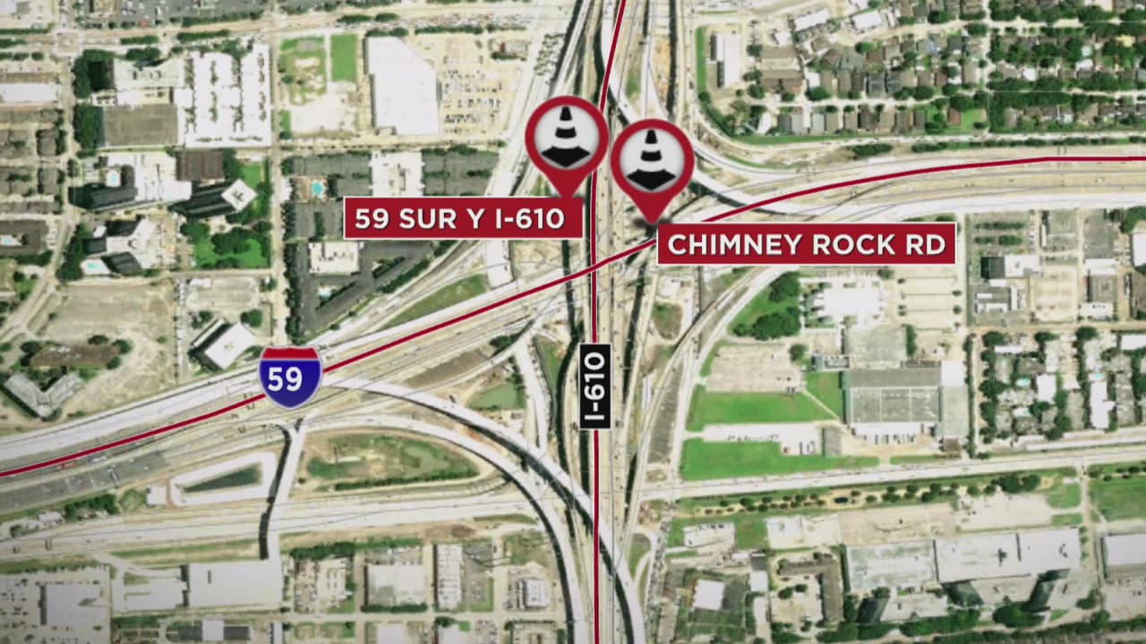 La salida de Chimney Rock RD de los carriles principales hacia el sur de la autopista Southwest Freeway se cerrará al mismo tiempo por dos meses.