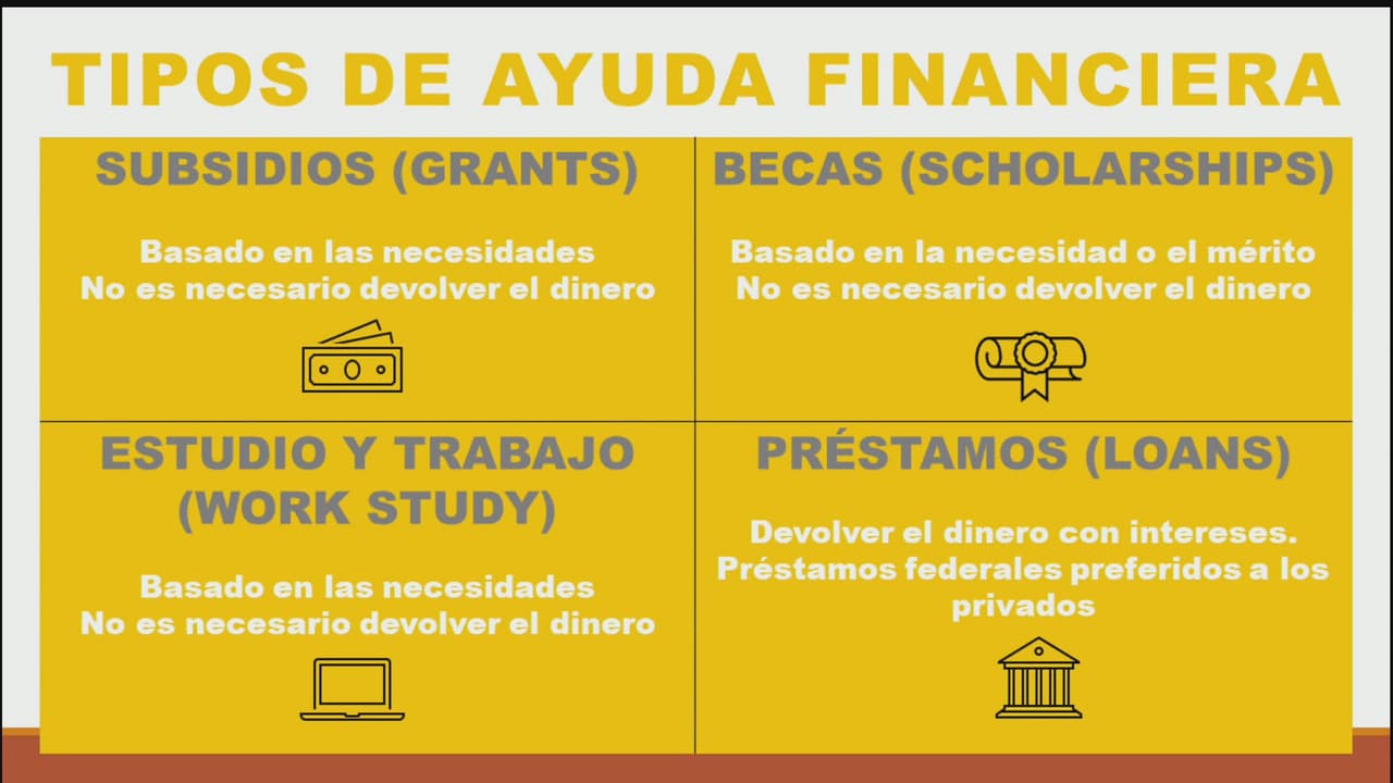 Ismael Ayala, de College Board comparte información sobre las diferentes opciones de ayuda financiera disponible para apoyar a estudiantes a pagar los estudios universitarios.