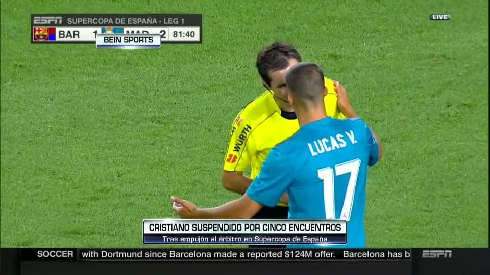 El delantero del Real Madrid estará alejado de las canchas por varias semanas tras su expulsión y el contacto físico que tuvo con el árbitro que ofició el partido de ida de la Supercopa de España. También, el Barcelona suma un nuevo fichaje, y Memo Ochoa tiene su primer traspié con el Standard de Lieja.