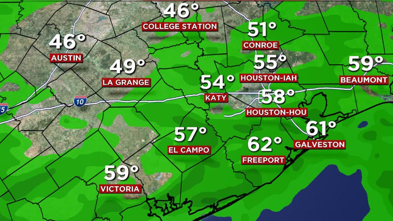 El paso de un débil frente frio provocará que las precipitaciones continúen durante la madrugada del jueves, la temperatura descenderá y se ubicará en el rango de los 50 grados Fahrenheit.