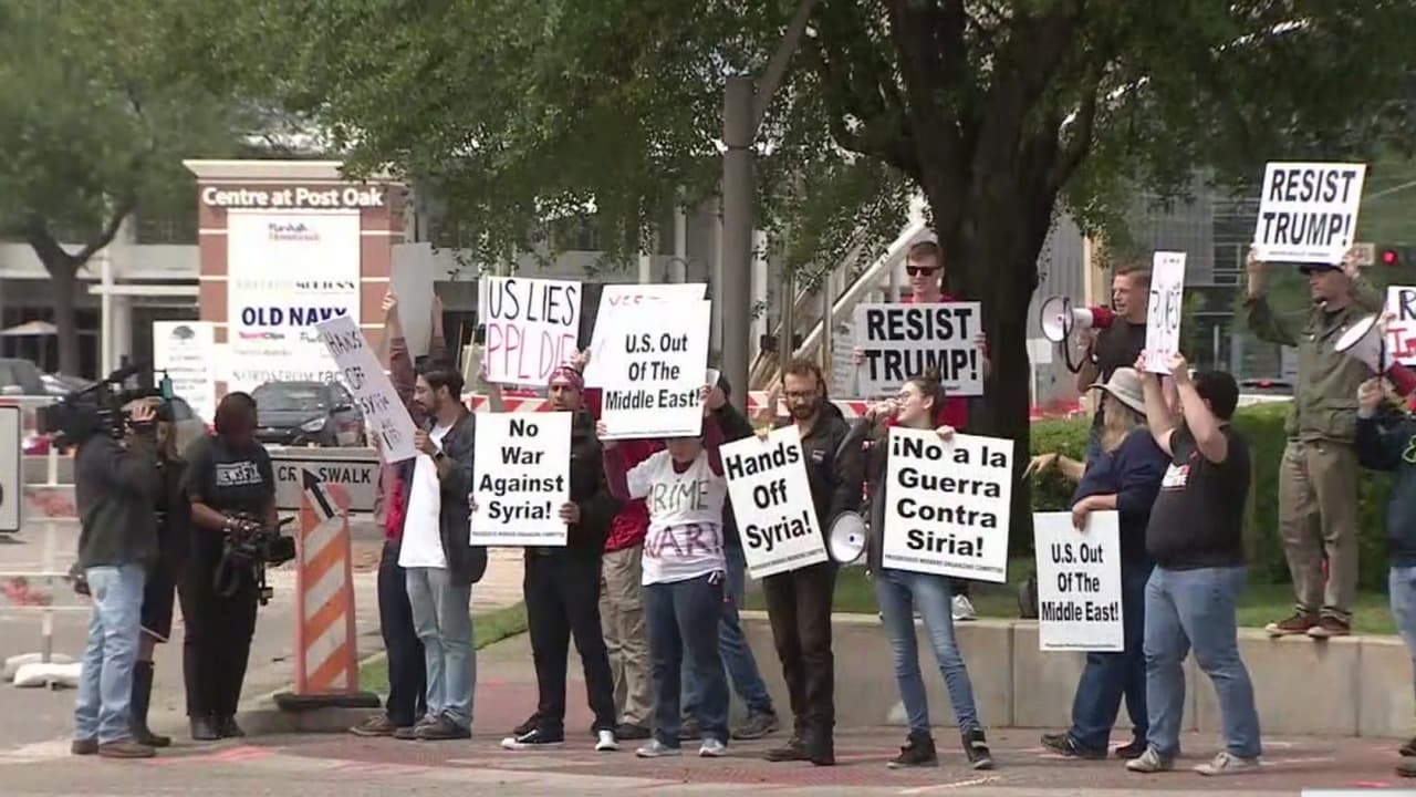 Decenas de personas en Houston salen a protestar por la reciente ofensiva militar contra Siria
