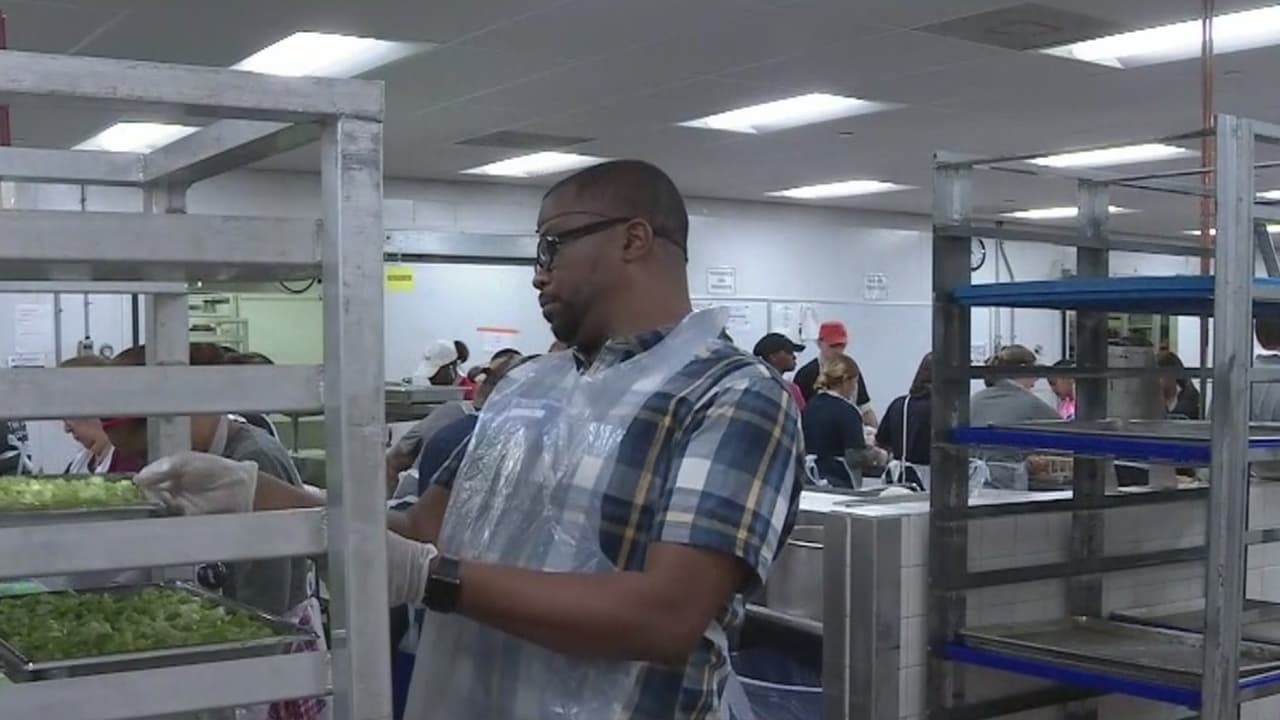 Decenas de voluntarios participan en la realización del banquete de Acción de Gracias en el George R. Brown