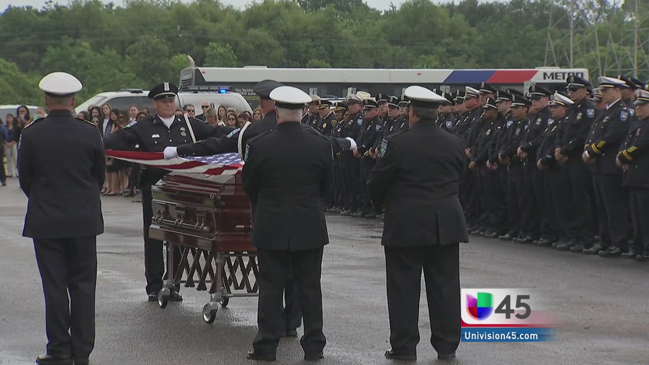 La policía realizó una ceremonia fúnebre para un oficial quien falleció tras ser atropellado por una conductora intoxicada.