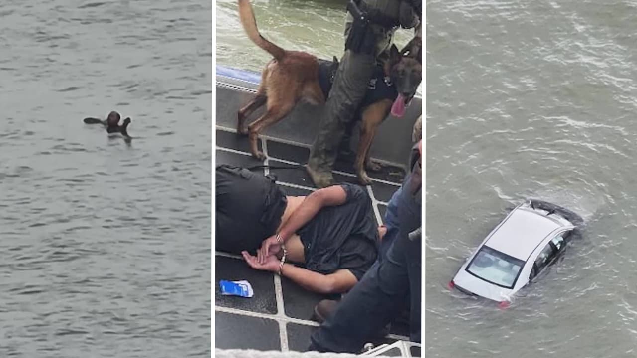 El sospechoso habría conducido desde el suroeste de Houston hasta Galveston y fue arrestado tras una persecución policial. El sujeto llegó a una calle sin salida y terminó cayendo al mar con el auto, además, recibió algunas mordeduras de un oficial canino, por lo que fue llevado al hospital. La identidad del detenido es desconocida y en el auto no se encontraron armas, pero un equipo de buzos está tratando de localizar cualquier evidencia.