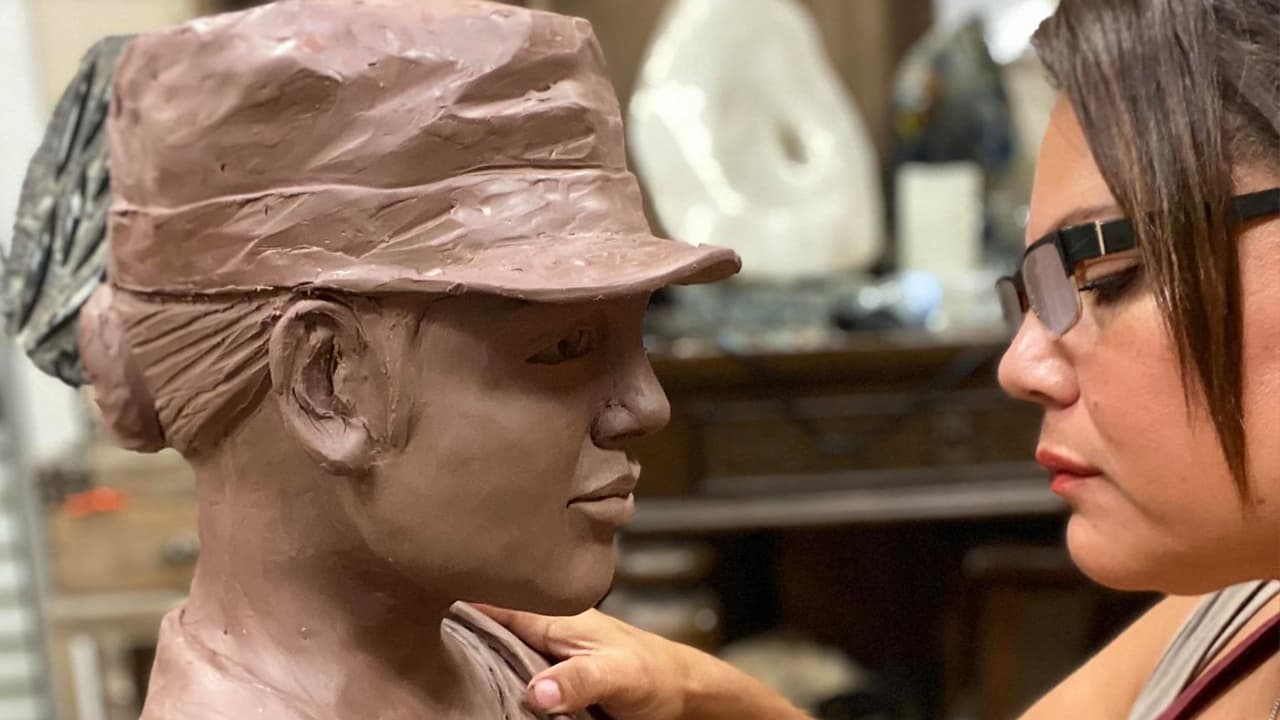 Shirley Scarpetta creó un busto de la soldado hispana de Houston, Vanessa Guillén, la artista terminó la obra en tres días y asegura que normalmente dedica un mes para una escultura de este tipo.