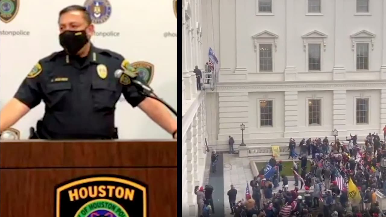 “El oficial asistió en su propio tiempo y no solo llegó a la protesta, también entró al Capitolio. No hay excusa para la actividad delictiva, especialmente de un oficial de policía. No puedo decirles el enojo que siento al pensar que en un oficial de policía se deicidió a asaltar el Capitolio o miembros del ejército o del Servicio Secreto. Por eso, nuestro compromiso aquí en el área de Houston es siempre con el estado de derecho y me entristece informar que tenemos a ese oficial y quiero anunciarlo aquí porque son los hechos:", aseveró Acevedo.
