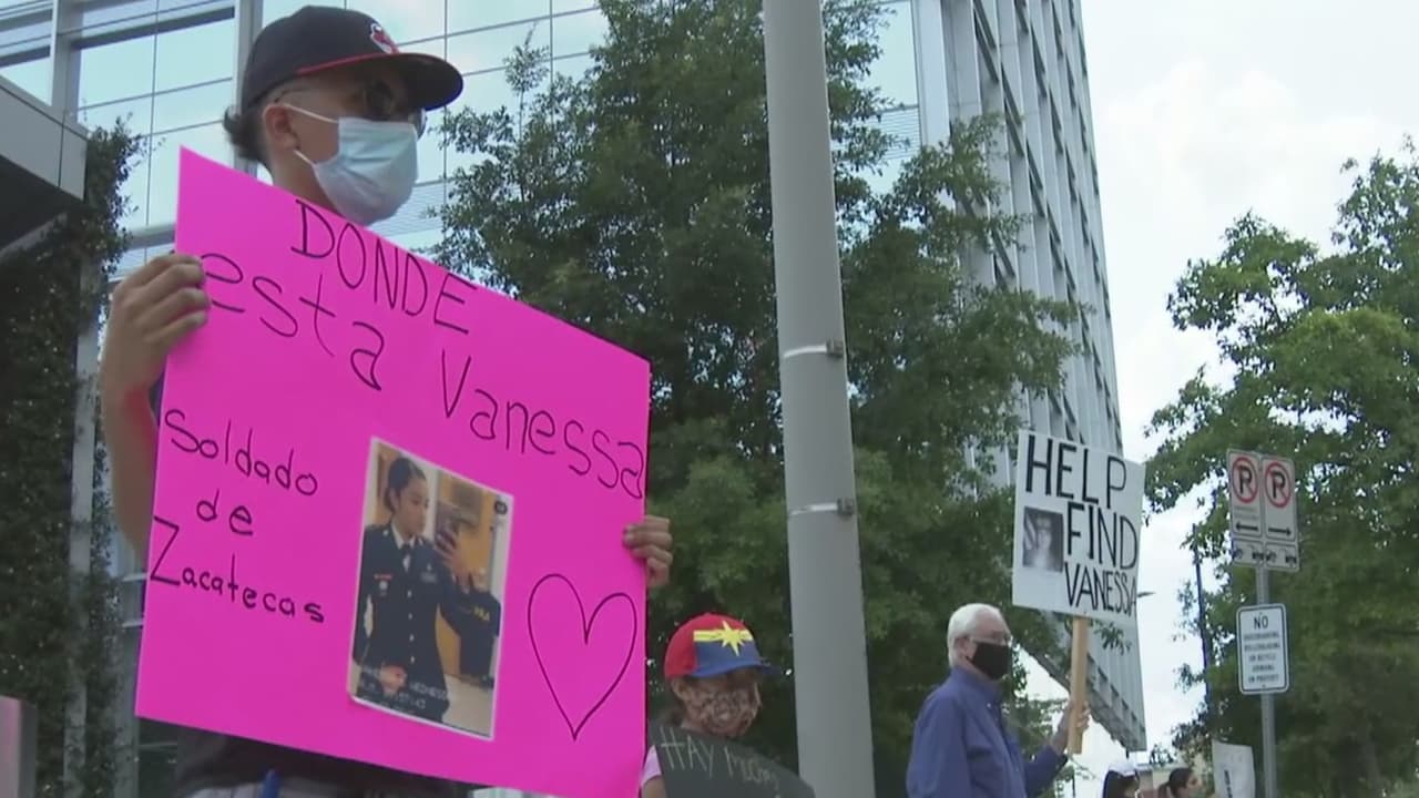 Familiares y amigos de la soldado Vanessa Guillén se reunieron en el centro de Houston para exigirles a las autoridades que investiguen su paradero. La joven hispana, de 20 años, fue vista por última vez el pasado 22 de abril en el estacionamiento de la base militar de Fort Hood, donde sirve para el Ejército.