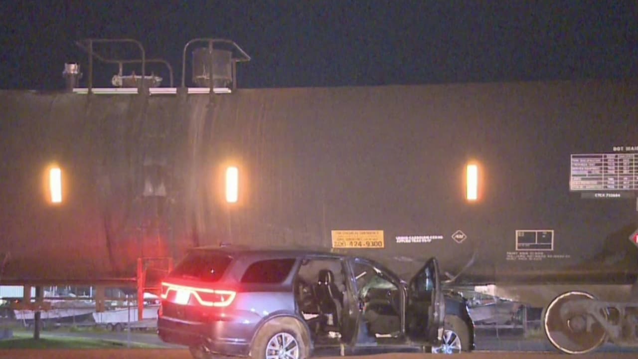 Dos personas fueron hospitalizadas después de que su SUV se estrellara contra un tren en un cruce de ferrocarril en el condado de Galveston este viernes por la mañana.