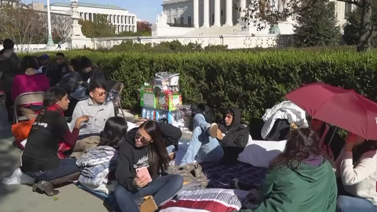 Dreamers y activistas acampan afuera de la Corte Suprema de Justicia para asistir a la audiencia de DACA