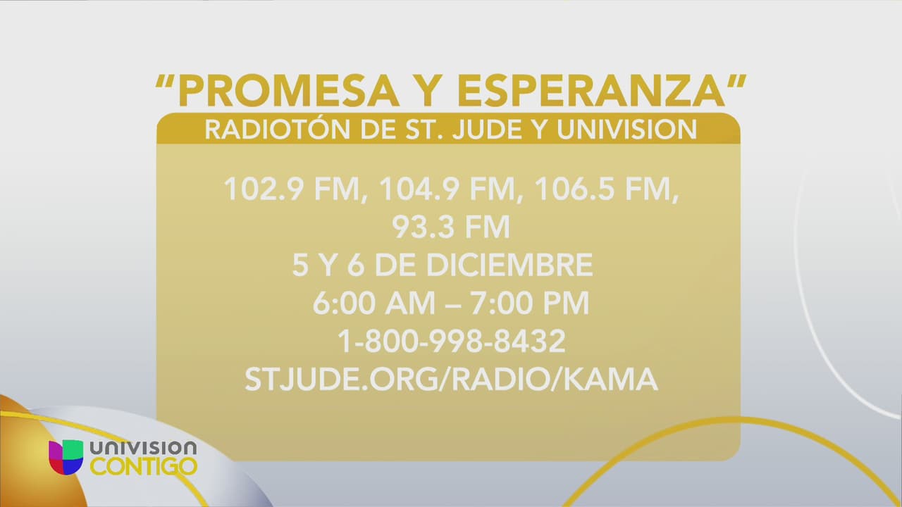 El 5 y 6 de diciembre, St. Jude y Univision se unen nuevamente para su radiotón anual, “Promesa y Esperanza”, te invitamos a convertirte en un Ángel de Esperanza en apoyo a los niños con cáncer.