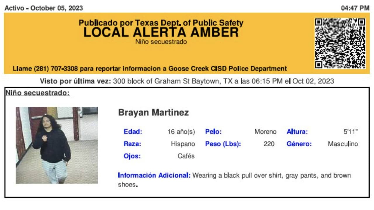 Emiten Alerta Amber en Texas por desaparición de joven de 16 años