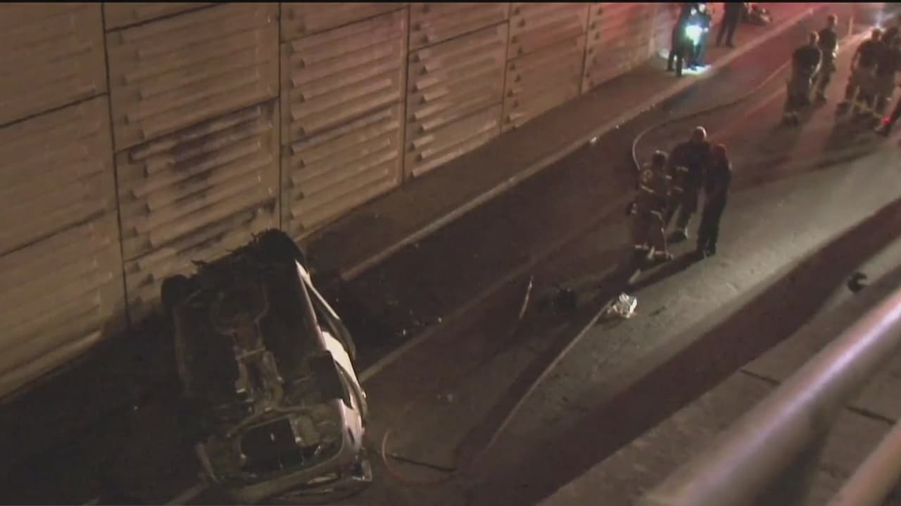 Video Dos jóvenes cayeron a 20 pies de altura luego de que su auto saliera volando por un impacto: uno de ellos no sobrevivió