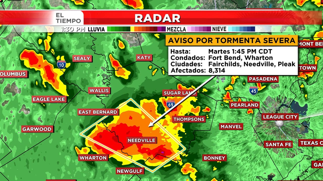 El Servicio Meteorológico Nacional ha emitido los avisos para los condados de Fort Bend, Wharton, Fairchilds, Needville y Pleak.