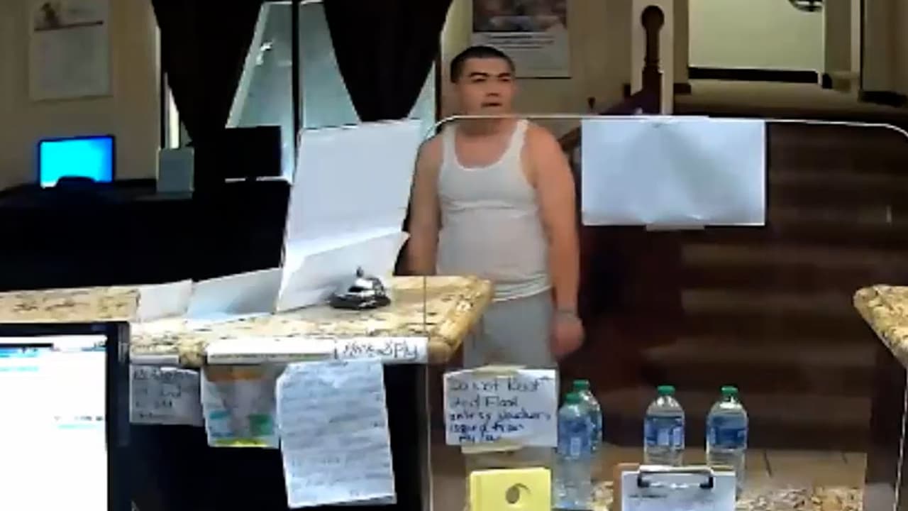 Salta encima del mostrador, agarra por el cuello al empleado y luego roba el dinero de un hotel en Texas
