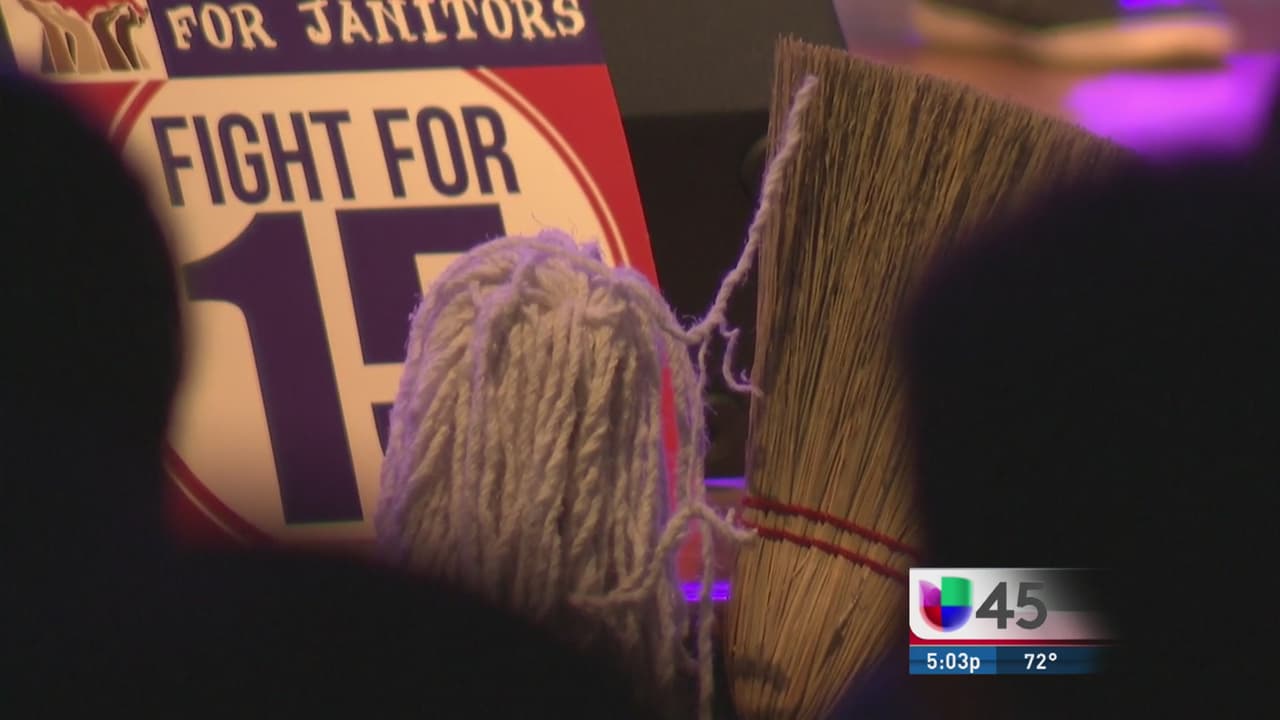 Los trabajadores de limpieza pidieron un salario mínimo de $15 la hora. El contrato está próximo a renovarse.