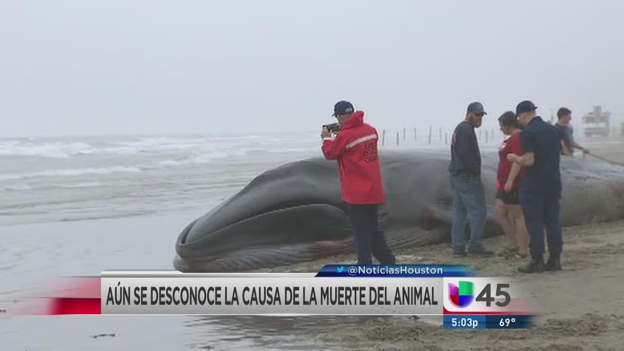 Como inusual calificaron expertos la aparición de una ballena encallada muy cerca a la orilla de las playas en Galveston