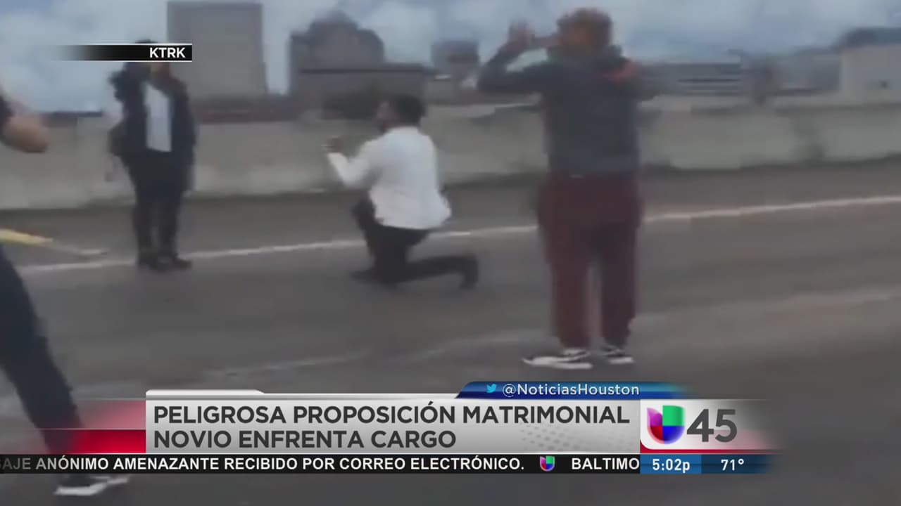 Un joven de Houston, ayudado por un grupo de amigos, detuvo el tráfico en una importante autopista para proponer matrimonio a su novia y ahora enfrenta cargos