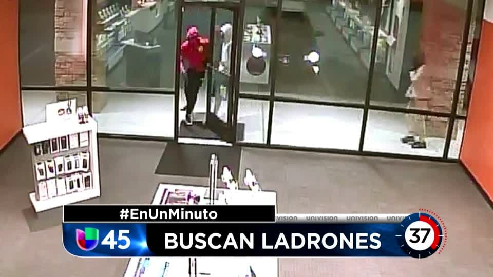 En Un Minuto Houston: Buscan a sospechosos captados en video mientras robaban una tienda de celulares en Richmond
