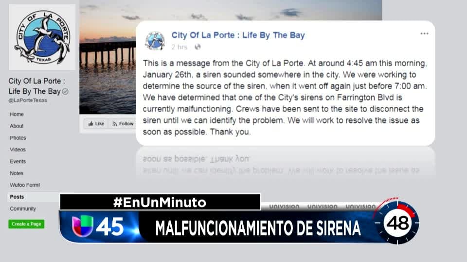 En Un Minuto Houston: El sonido de una alarma despertó a los residentes de La Porte, pero todo se trató de una falla