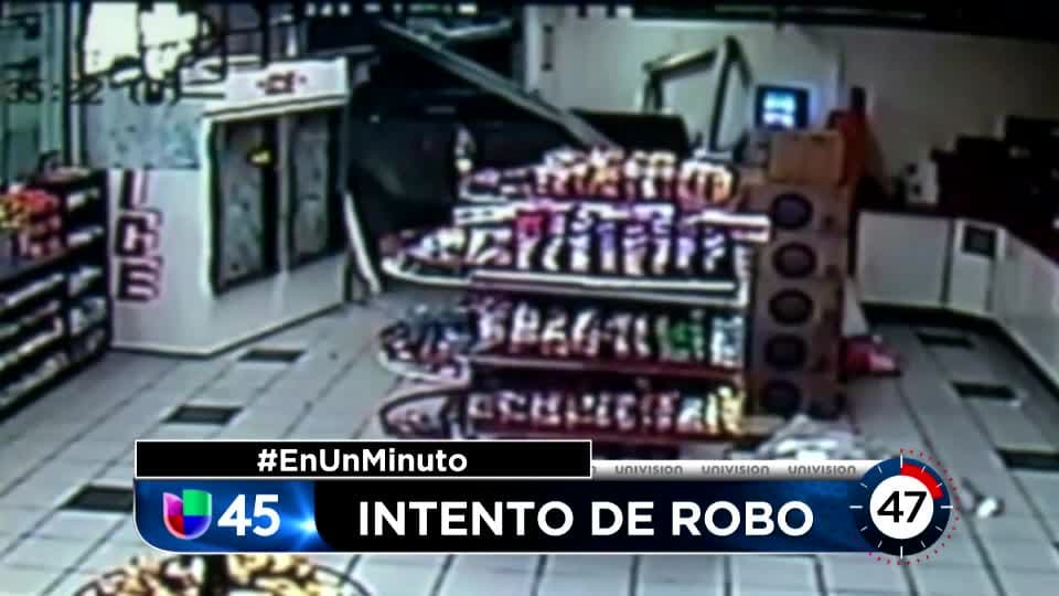 En Un Minuto Houston: Sospechosos irrumpieron con una camioneta en una tienda para robar un cajero pero no lo lograron