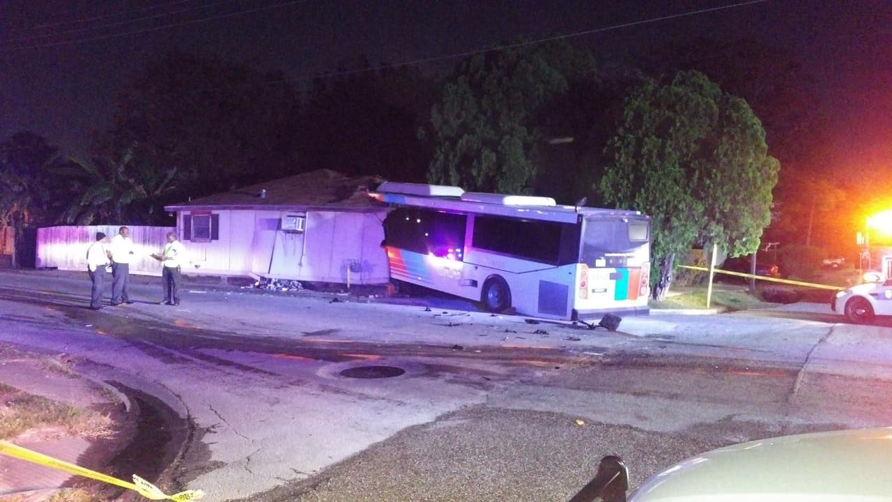 En Un Minuto Houston: Un autobús de Metro terminó incrustado en una casa tras ser impactado por otro vehículo