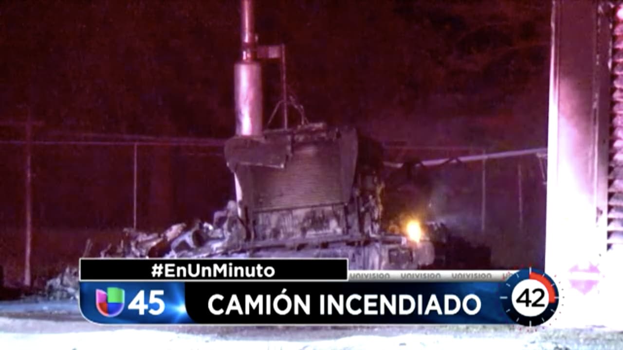 En Un Minuto Houston: Un camión de carga se prendió en llamas y quedó totalmente destruido
