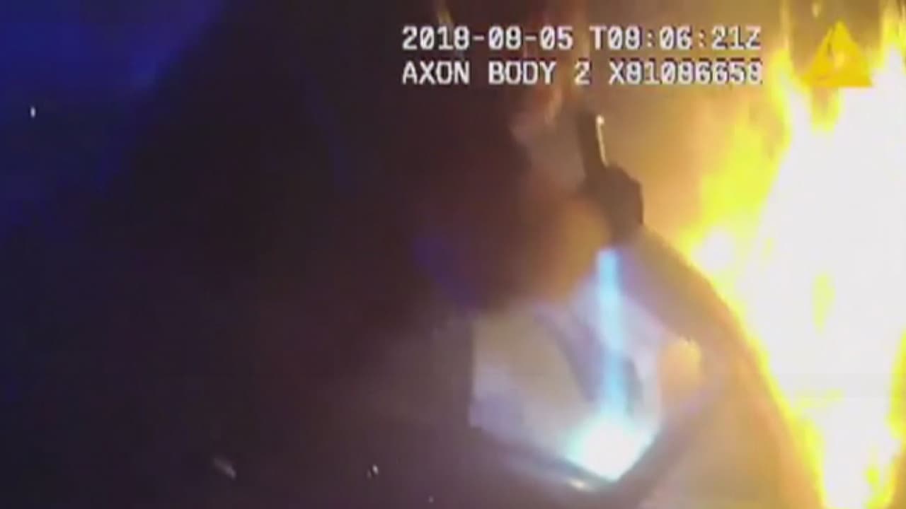 El vehículo se incendió tras chocar contra un poste de electricidad en Georgia. En las imágenes se observa cómo un policía logró abrir una de las puertas del vehículo y usó un extintor para sofocar la conflagración.