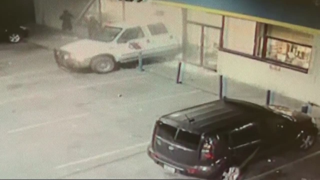 En video: Estrellan una camioneta contra un cajero automático para robarlo, pero son sorprendidos a tiros