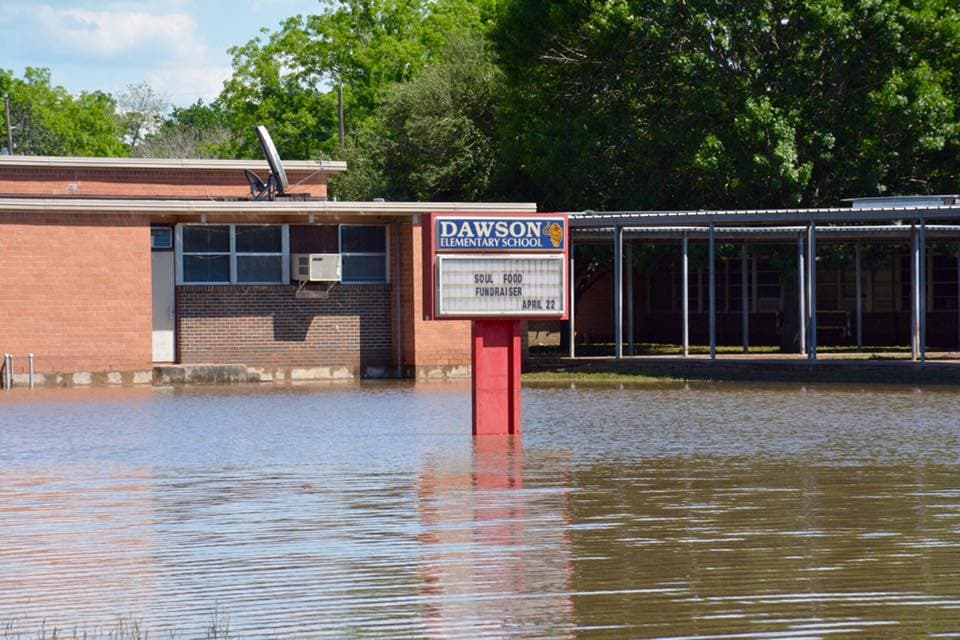 El caudal del río Colorado, que pasa cerca al poblado de Wharton, está seis pies por encima de su promedio normal