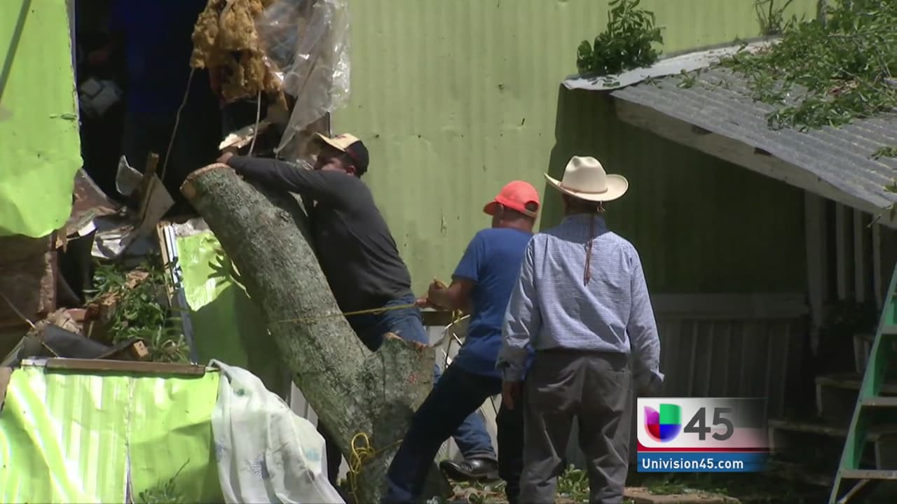 Las fuertes ráfagas de viento que trajo consigo una tormenta en el área de Willis, Texas durante la madrugada derribaron árboels que destruyeron decenas de viviendas
