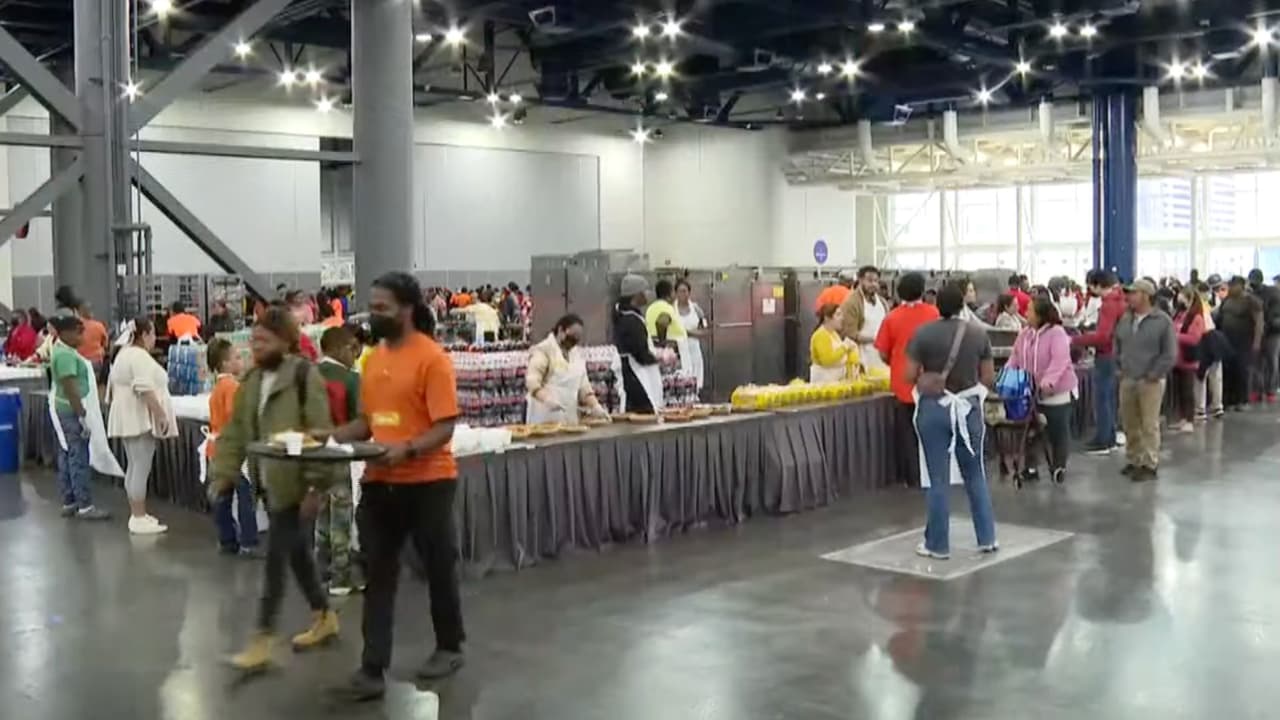 Entregan comidas calientes a miles de familias en el Centro de Convenciones George R. Brown