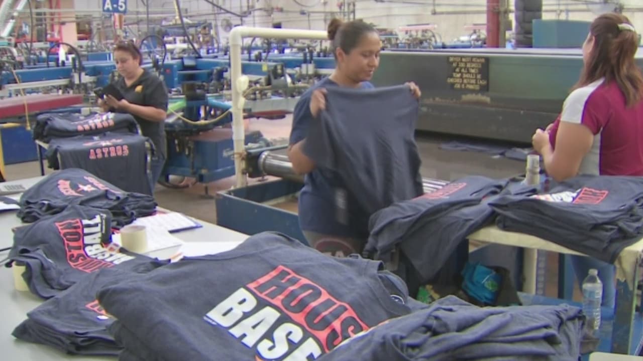 La empresa encargada de crear las prendas con los diferentes logotipos de los Astros trabaja a toda máquina para poder cumplir con la alta demanda por el gran papel que está desempeñando el reconocido equipo.