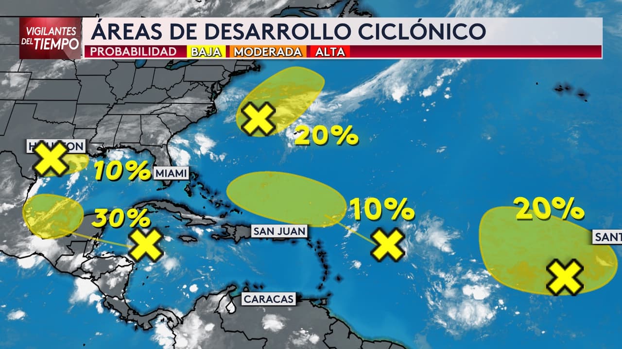 El jefe de meteorología, Gastón Heredia, explica que de momento no hay nada formado, sin embargo hay dos áreas de desarrollo ciclónico, cercanas a la costa de Texas, que pueden evolucionar durante los próximos días.