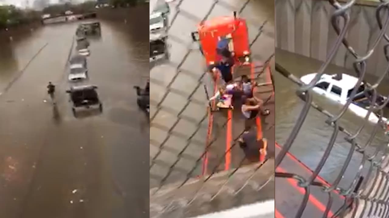 Video Captan en video a varios conductores atrapados en medio de una autopista inundada
