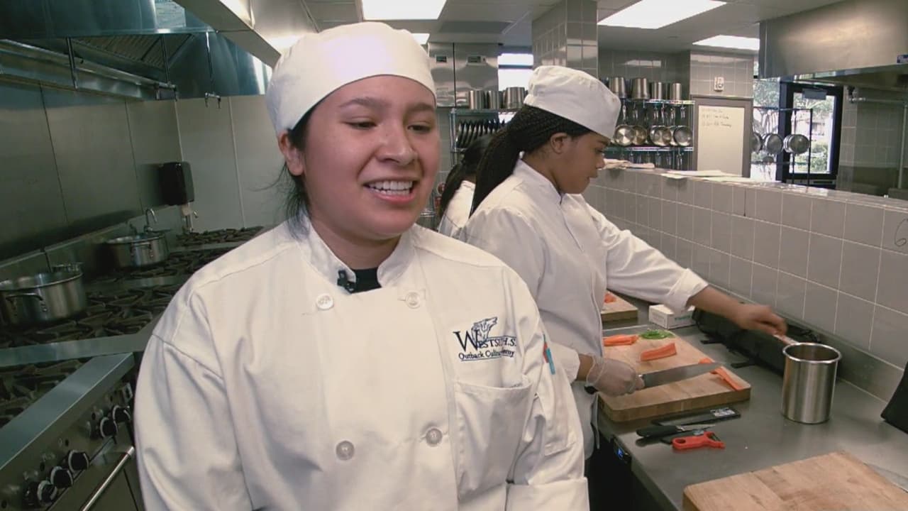 Estudiante hispana de cocina prepara la comida para los fanáticos del Super Bowl